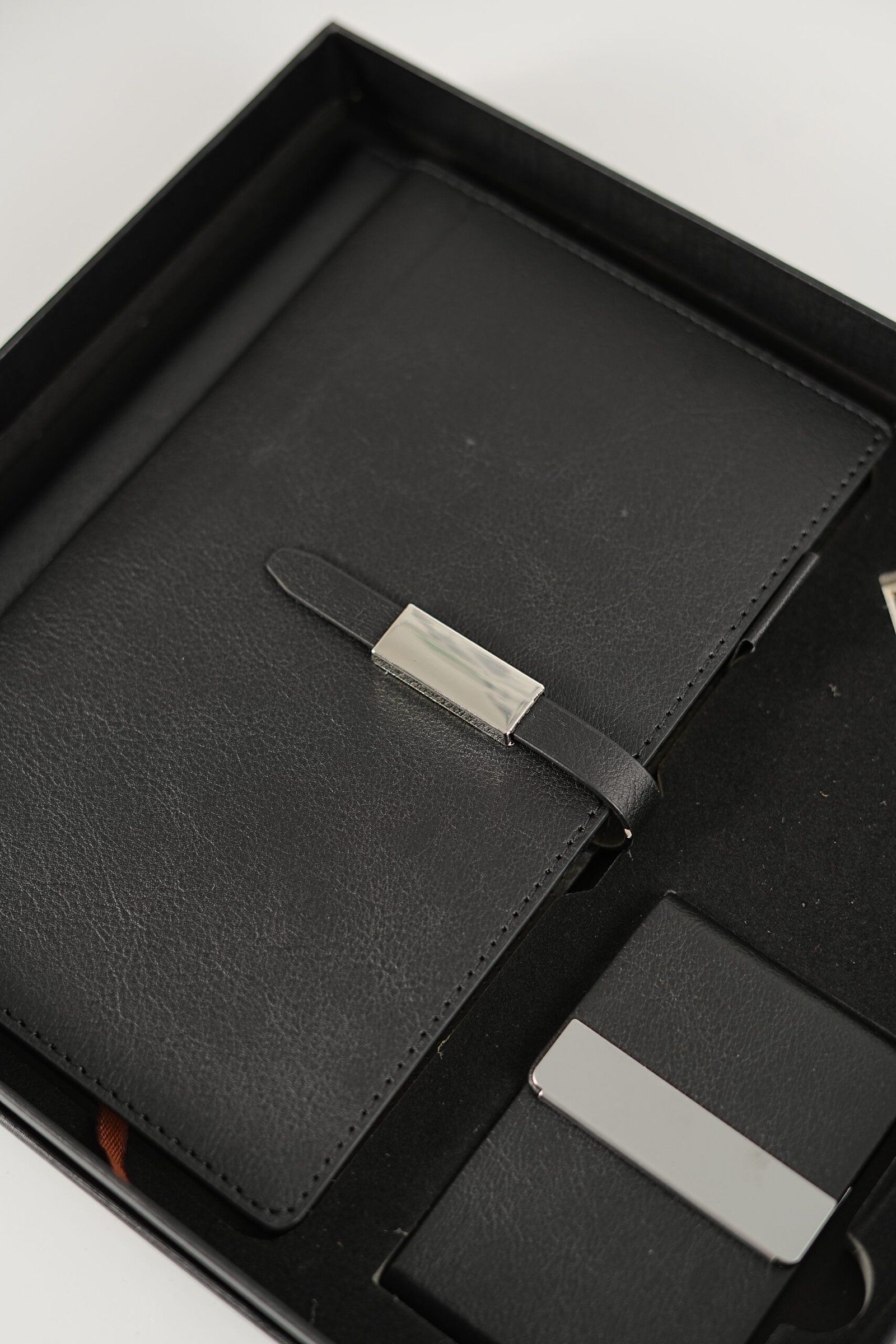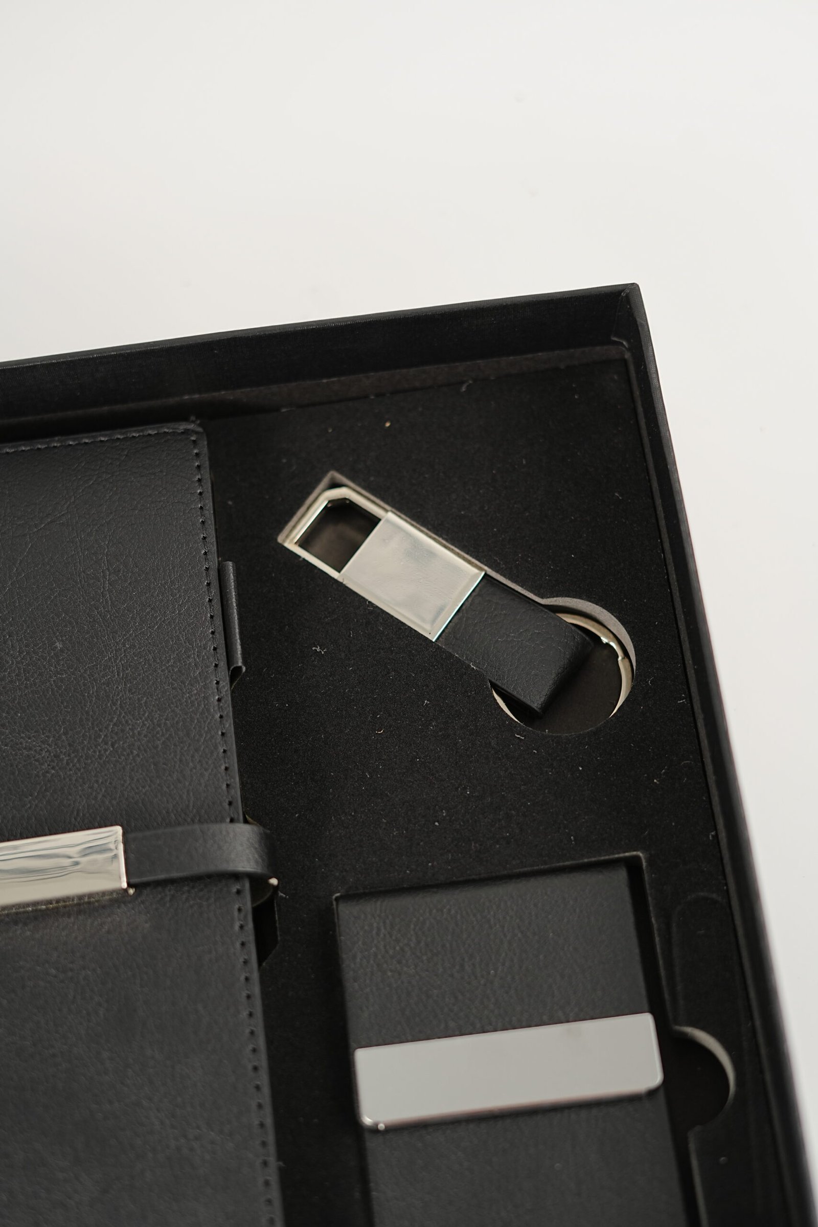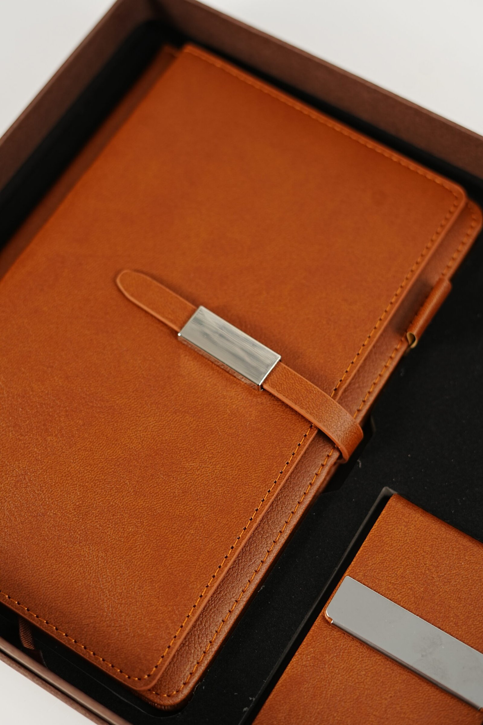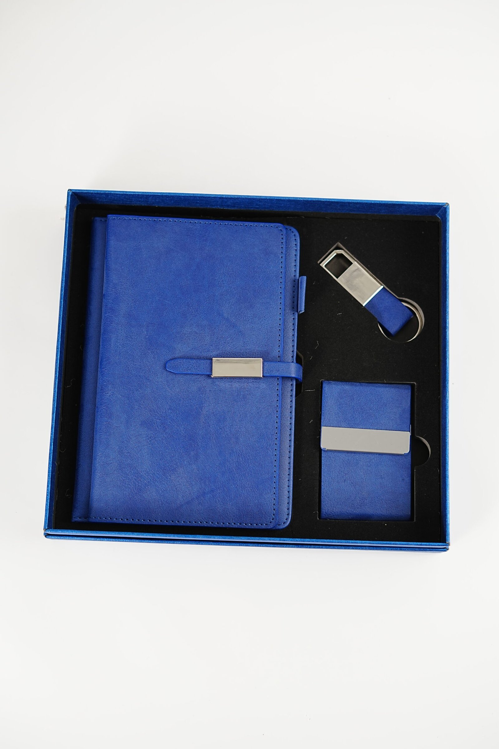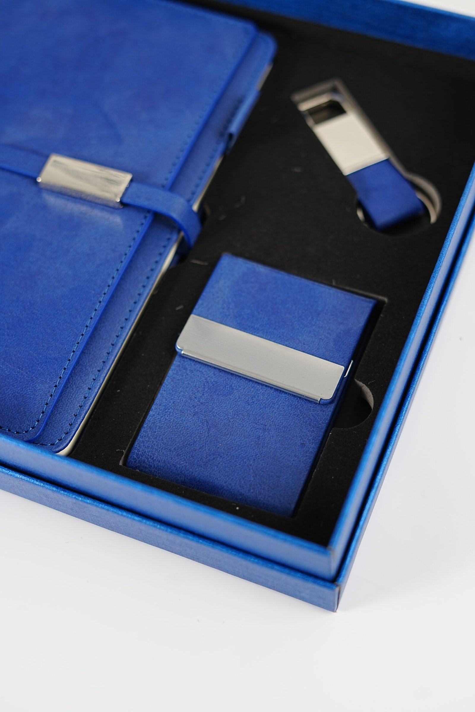 A luxurious leather gift set featuring a stylish notebook, sleek card holder, and elegant keychain — crafted with premium quality for a professional, timeless touch. Perfect for New Year 2026 gifting.