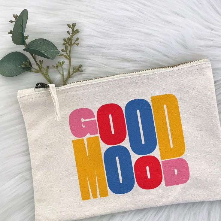 “Start your day in a GOOD MOOD — the perfect pouch for your pens, makeup, or whatever makes you smile.