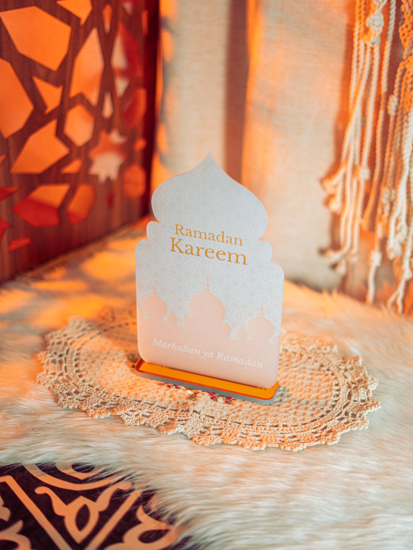 Decorate with elegance… Acrylic Ramadan Kareem stand adds a touch of luxury to your celebrations.