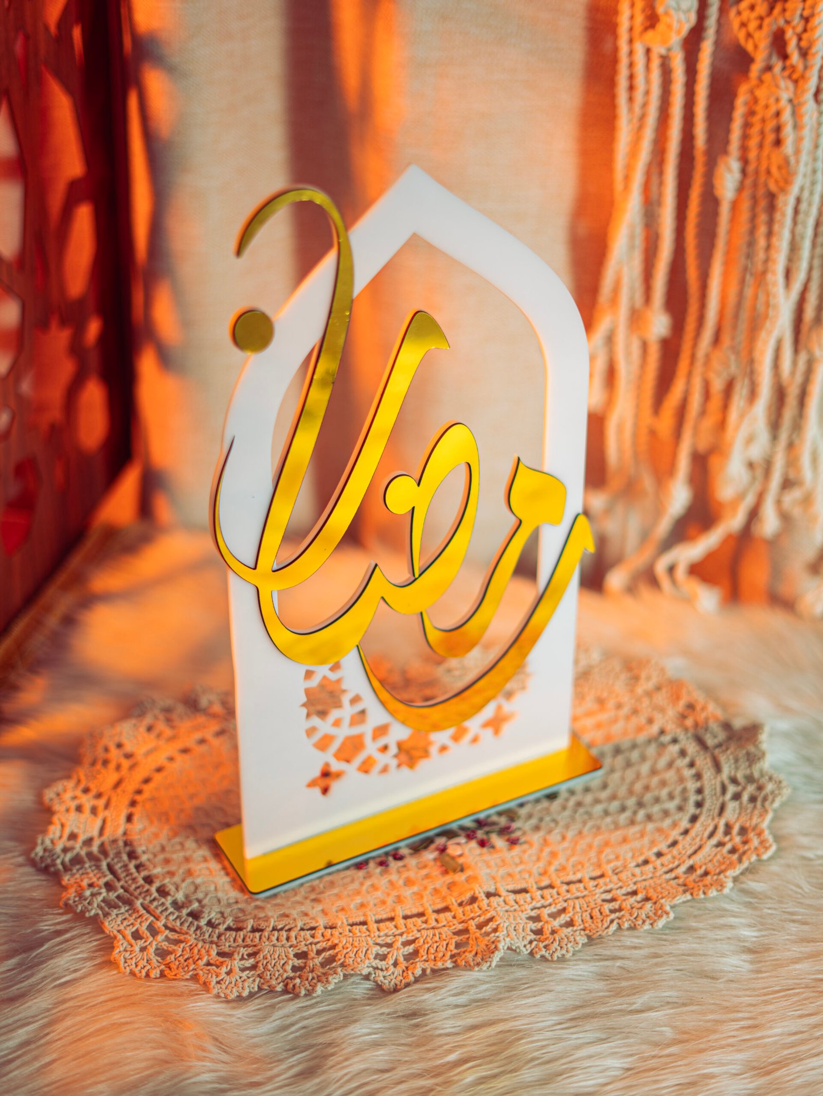 A sleek acrylic Ramadan stand table decor, available in white or black, designed to add elegance to your space.