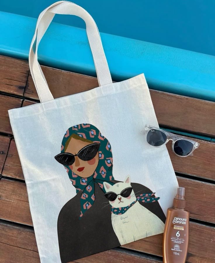 “Tote-ally stylish! Carry your essentials with this cool cat & girl canvas bag.