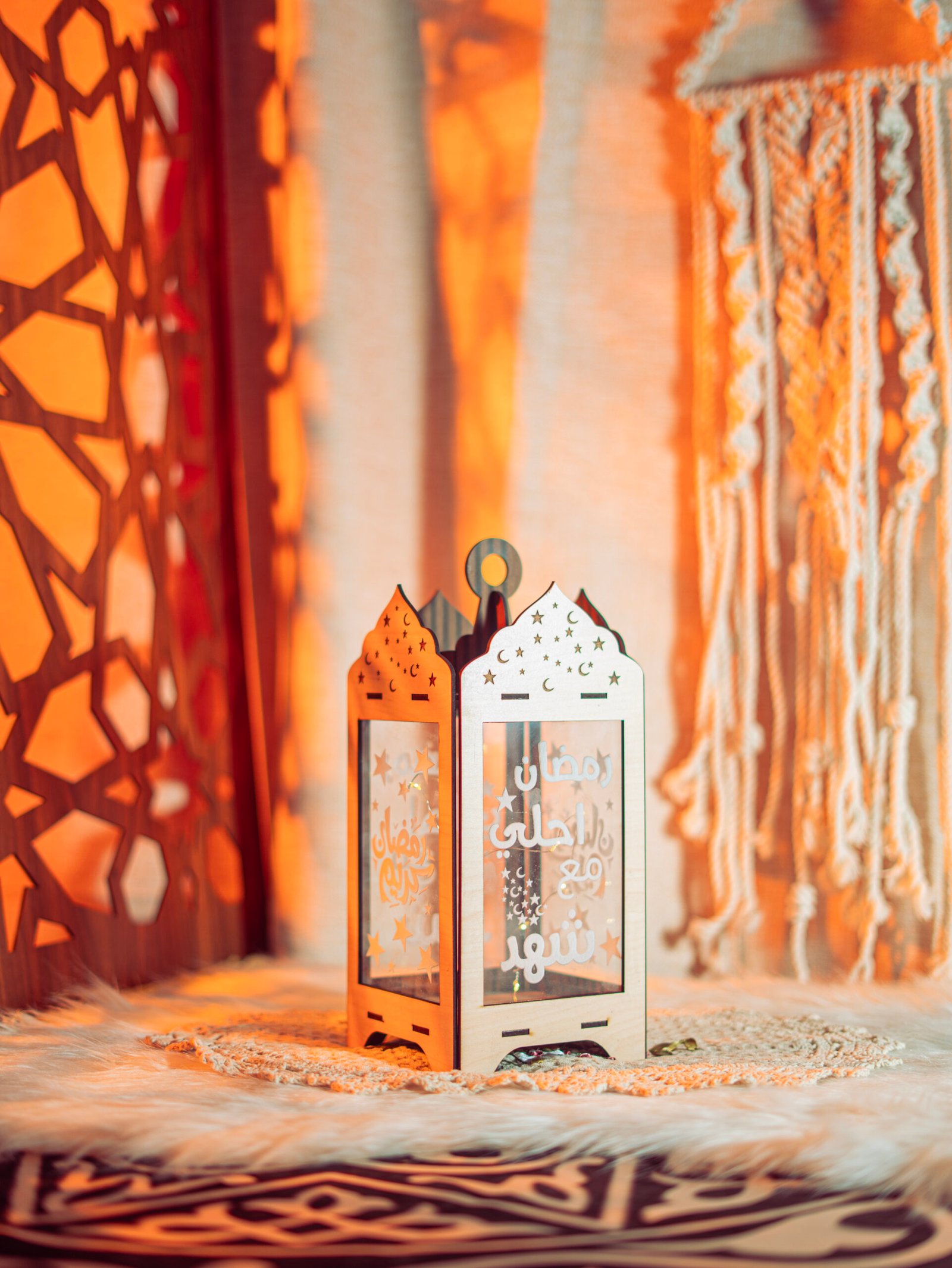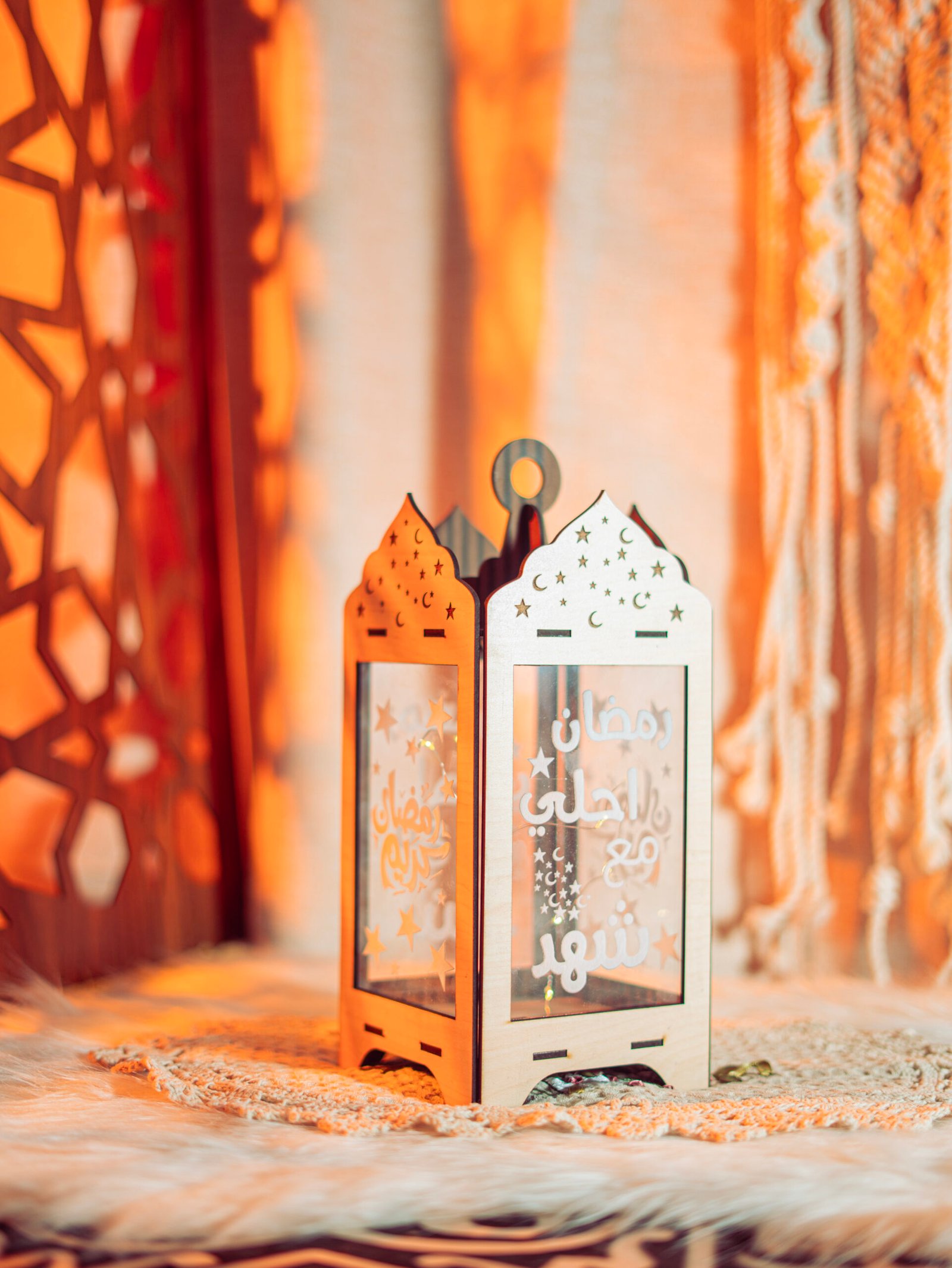 Celebrate Ramadan with this beautifully engraved Wooden Lantern, customized with a name and softly illuminated from inside to create a warm and magical ambiance.”